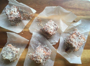 Ha készen vagyunk ezzel is, akkor pedig forgassuk meg a kókuszreszelékbe és készen is vagyunk vele. 🙂